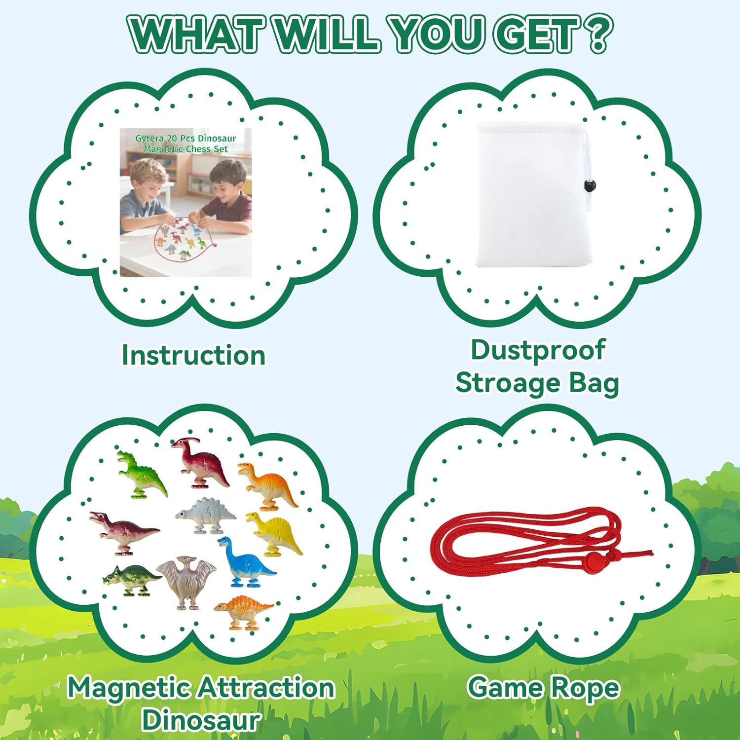 Dinochez Dinosaur Magnetic Chess Game Set 2025 Kids Toys, 20 Pcs Dinosaur Stones, 1 String & Portable Storage Bag, Strategy Board Games Chess Set Kids Games for Christmas Family Games Night