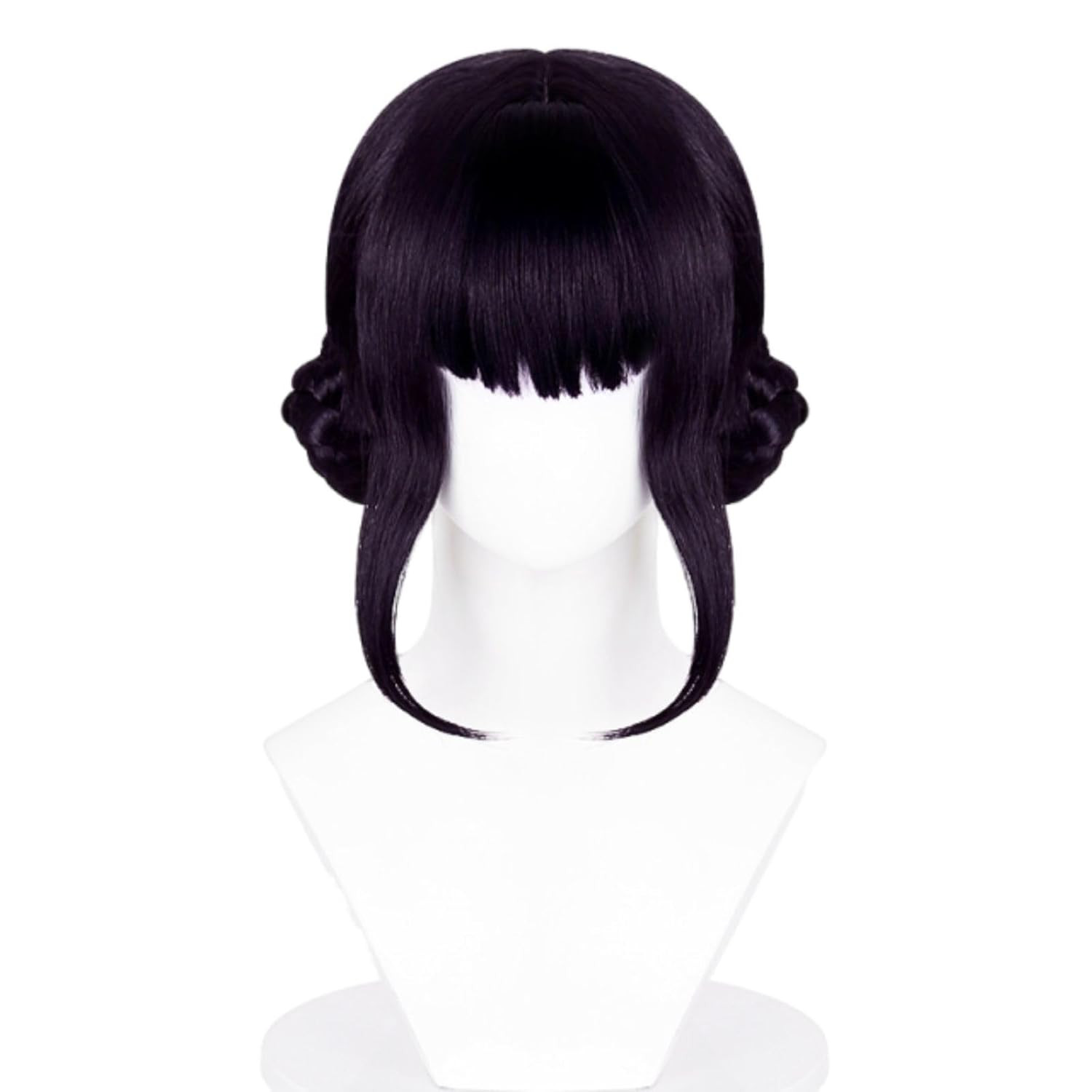 Short Black Purple Cosplay Wig with 2 Buns, Halloween Costume Cosplay Wigs, Cartoon Movie Singer Halloween Accessories Props Wig for Women Men