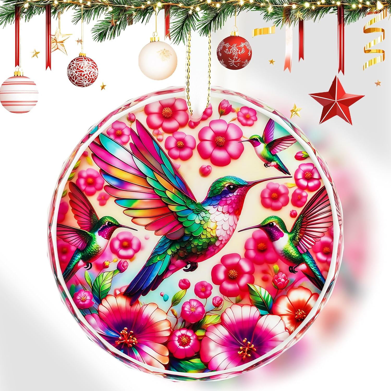 Hummingbird Ornaments for Christmas Tree, Stained Hummingbird Home Decor Glass Hanging, Christmas Tree Indoor Outdoors Home Decorations to Hummingbirds Lover, Book Lovers