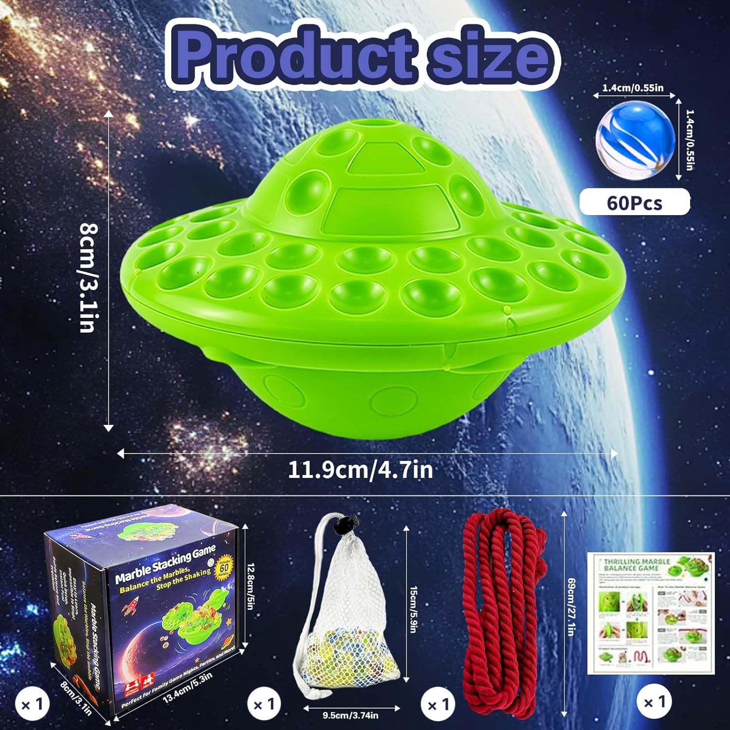 Marble Balance Board Games, 60-Piece Colorful Marbles with Built-in Storage, Fun Family Board Game for Kids & Adults, Exciting Party Game for 1-4 Players, Birthday Halloween Party Favors for Kids 8-12