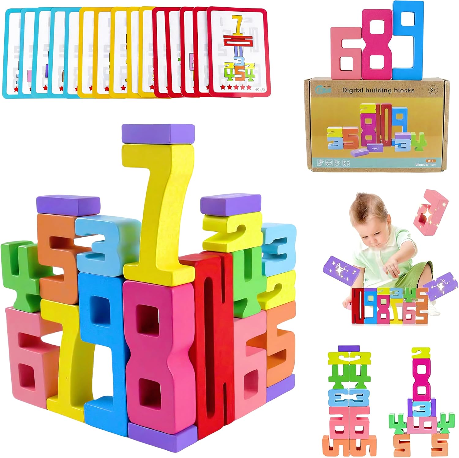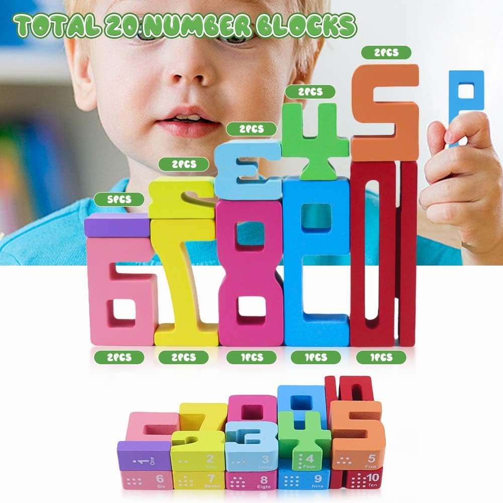 Wooden Number Building Blocks, 20Pcs Numbers, Math Learning Toys, 1-10 Building Blocks, Competition Toy, Wooden Blocks, Toys for Ages 8-13, Educational Gifts